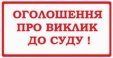 Оголошення про виклик до суду Белей Людмили Федорівни